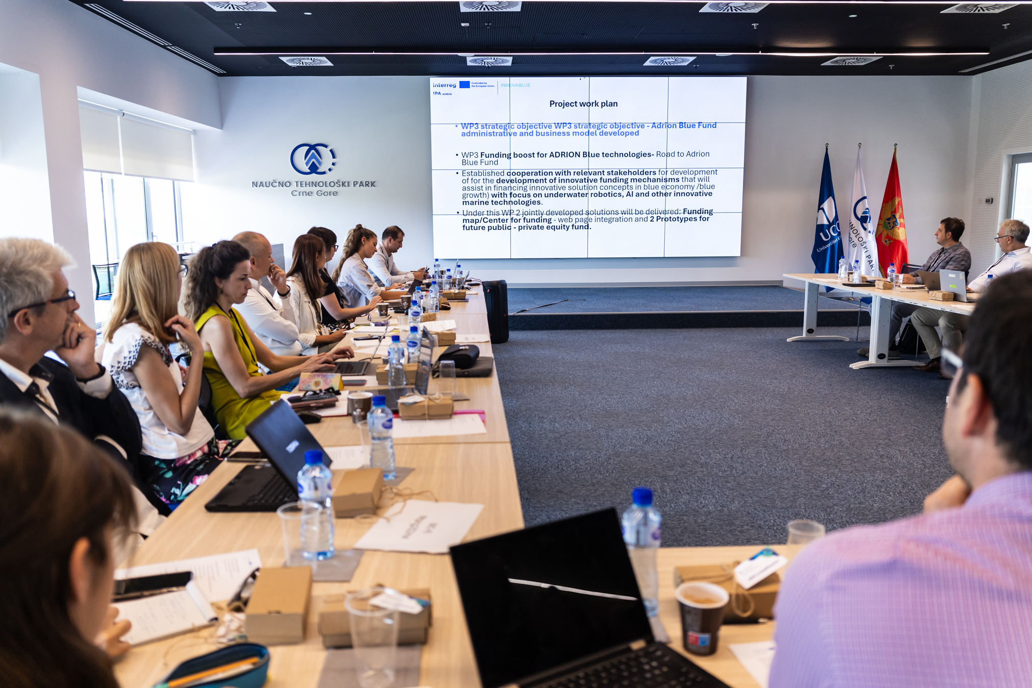 INNOVABLUE project officially started with Kick-off meeting in Podgorica Published on: Sep 24 2024 The INNOVABLUE project, aimed at fostering innovation and sustainability in the blue economy, was officially launched with a successful kick-off meeting held on September 17th and 18th, 2024, in Podgorica, Montenegro. Hosted at the Innovation Fund of Montenegro, the event brought together project partners, and representatives from bodies such as Joint Secretariat of ADRION Programme, National contact point and Ministry of European Affairs of Montenegro, to discuss plans for implementation, define responsibilities, and outline the impact they aim to achieve through the INNOVABLUE project. The meeting, which spanned two days, was a starting point for the project’s goals of boosting marine technologies, fostering cross-border collaboration, and enhancing the blue economy’s innovation ecosystem. The project brings together two important innovation networks: the BlueAIR Innovation Community and the Innovamare Digital Innovation Hub, with a shared mission of driving sustainable development in the region. The kick-off began with a welcome address from Montenegrin representatives, followed by a presentation from DIH Innovamare, the project’s lead partner. The agenda included an introduction to the project partners and a comprehensive overview of INNOVABLUE’s objectives, structure, and key initiatives. A significant highlight was the formation of the Steering Committee, where members were selected, and roles and responsibilities were defined. The second day focused on the operational aspects of the project. Partners discussed a detailed work plan for the initial implementation phase, with DIH Innovamare presenting the Draft Quality Implementation Manual and Communication Plan. The meeting also covered administrative and reporting procedures, quality standards for deliverables, and the official partnership agreement. These discussions provided a roadmap for the upcoming phases of the project. INNOVABLUE INNOVABLUE is a transnational project with a budget of EUR 1.7 million, co-funded by the INTERREG ADRION program. It aims to capitalize on and ensure the sustainability of existing blue economy initiatives – BlueAIR and Innovamare communities. The project’s key objectives include: Enhancing innovation ecosystems to promote collaboration among businesses, researchers, and authorities. Developing new regulatory frameworks to accelerate the adoption of blue technologies. Mapping funding opportunities and creating investment portfolios to support marine technology projects. Facilitating technology transfer to increase the competitiveness and sustainability of the marine sector. INNOVABLUE’s outcomes will benefit SMEs, research institutions, and public authorities by providing access to resources, funding opportunities, expert knowledge, and living lab sites. The project is designed to ensure long-term sustainability through continuous investment opportunities, partnerships, and mechanisms that will drive the region’s transition towards a resilient and innovative blue economy. Over the next two years, INNOVABLUE will focus on implementing its strategic and operational plans, fostering collaboration among stakeholders, and advancing marine technologies. For more information on the INNOVABLUE project and its upcoming activities, stay tuned to our website and social media channels: Facebook and LinkedIn. Project details: Budget: EUR 1,703,377.52 INTERREG Funding: EUR 1,447,870.88 Duration: July 2024 – December 2026 Project partners: DIH Innovamare, Hrvatska gospodarska komora, Università degli Studi di Trieste, Unione Regionale delle Camere di Commercio del Veneto, Tehnološki park Ljubljana d.o.o, Fakultet za elektrotehnika i informaciski tehnologii, UKIM – Skopje, Fond za inovacije Crne Gore, PERIFEREIA KRITIS, Inovacioni Centar Mašinskog fakulteta u Beogradu doo This project is supported by the Interreg IPA ADRION programme under the Interreg Funds (European Regional Development Fund and IPA III). Share this post on: